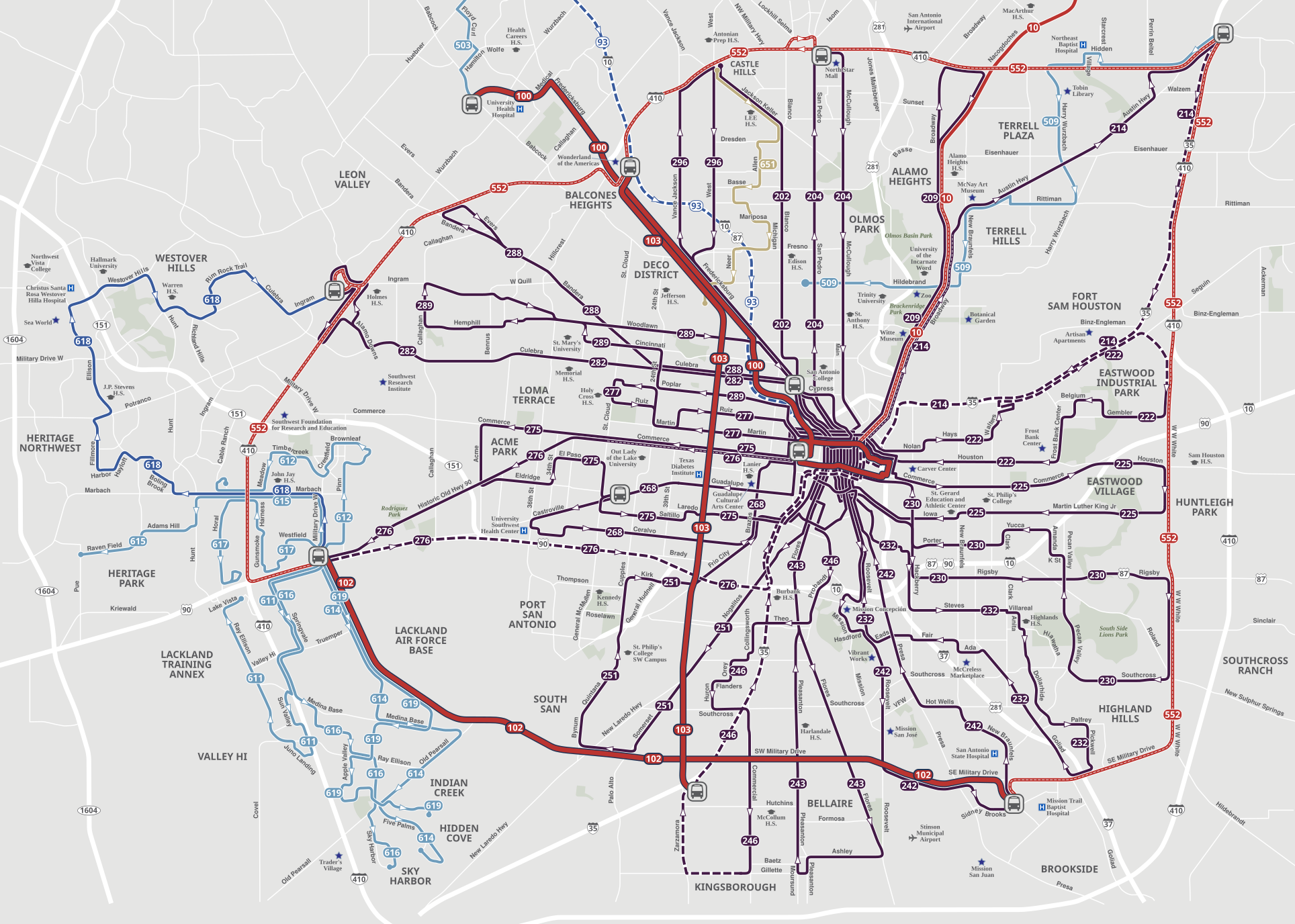 Downtown, University of the Incarnate Word, Alamo Heights, Randolph Park & Ride |